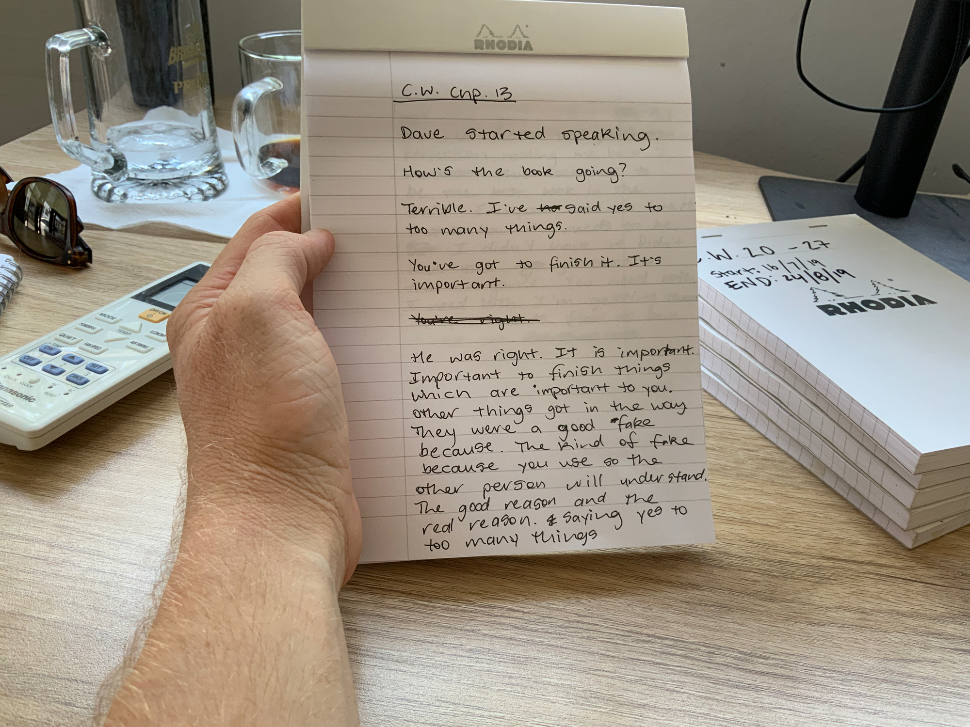 The first, a novel, Charlie Walks, the story of a computer engineer who wants to be a writer. I started and stopped the book half a dozen times across four years. Let other things get in the way. Things less important.