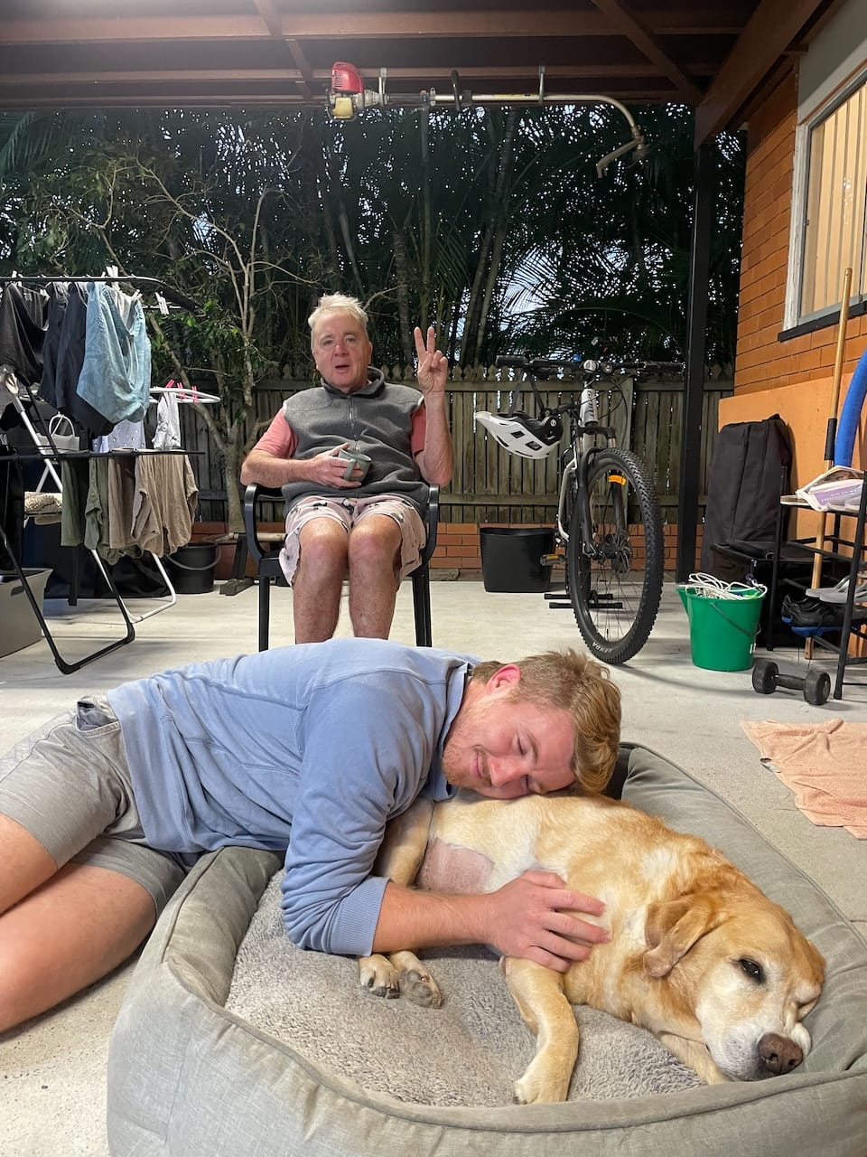 Seven to our house, we’d feed her with Bella, she’d stay the night, the crazy neighbour kids would play with her for a bit, Seven to our house, wrestle with Bella, wrestle with us, feed, stay the night, walk in the morning, take a shit three houses down the street, come home run around the side of house for dinner, sleep, repeat.