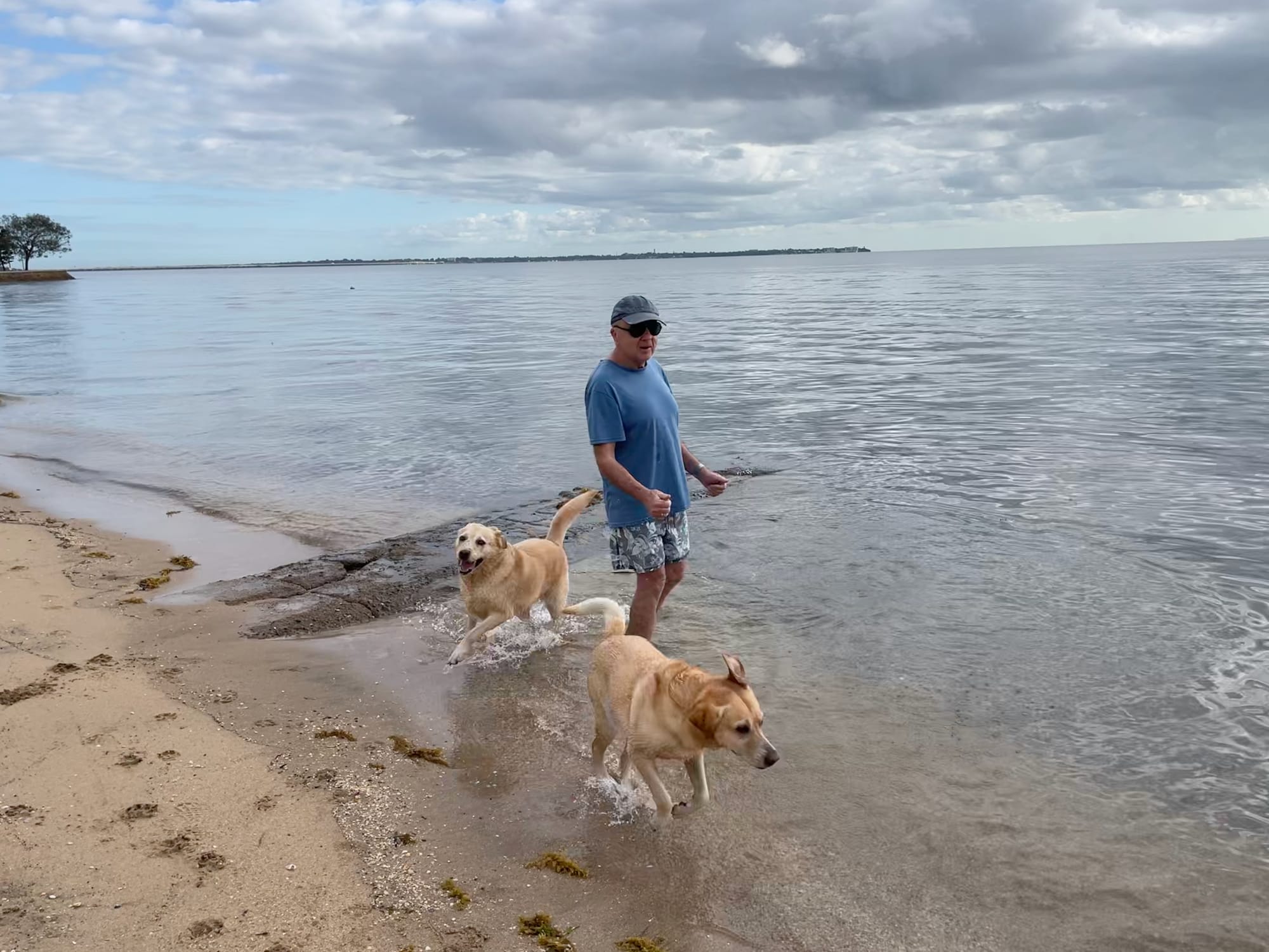 We’d sprint across the sand, look to the left, look to the right and see two dogs with their tongues out chasing after us.