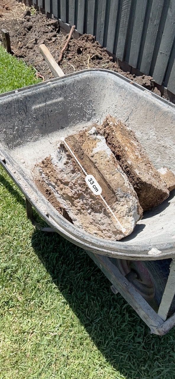 Digging the supporting posts out I discovered whoever put them in the ground wanted to make sure they’d survive the next dinosaur comet.