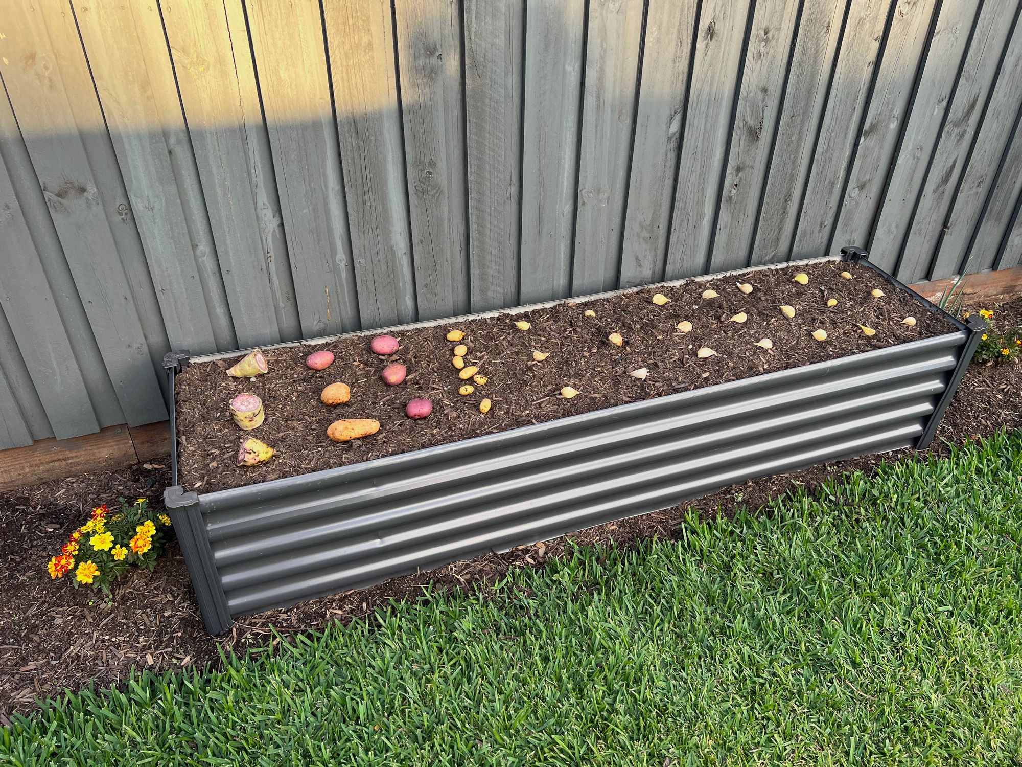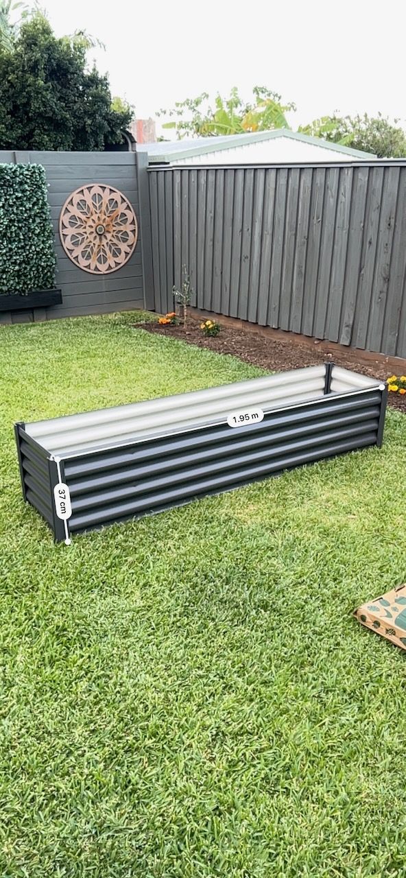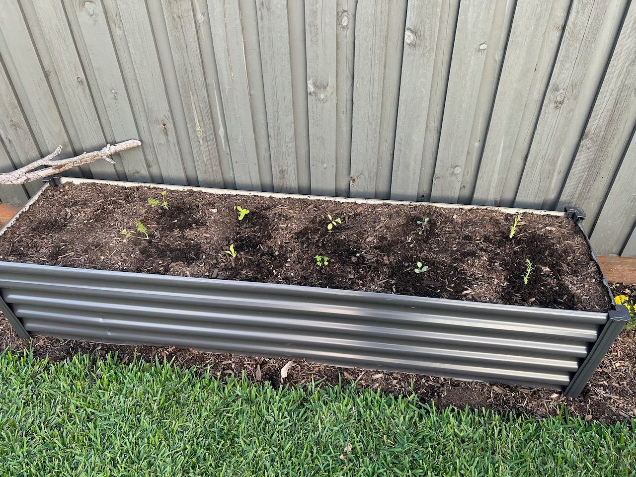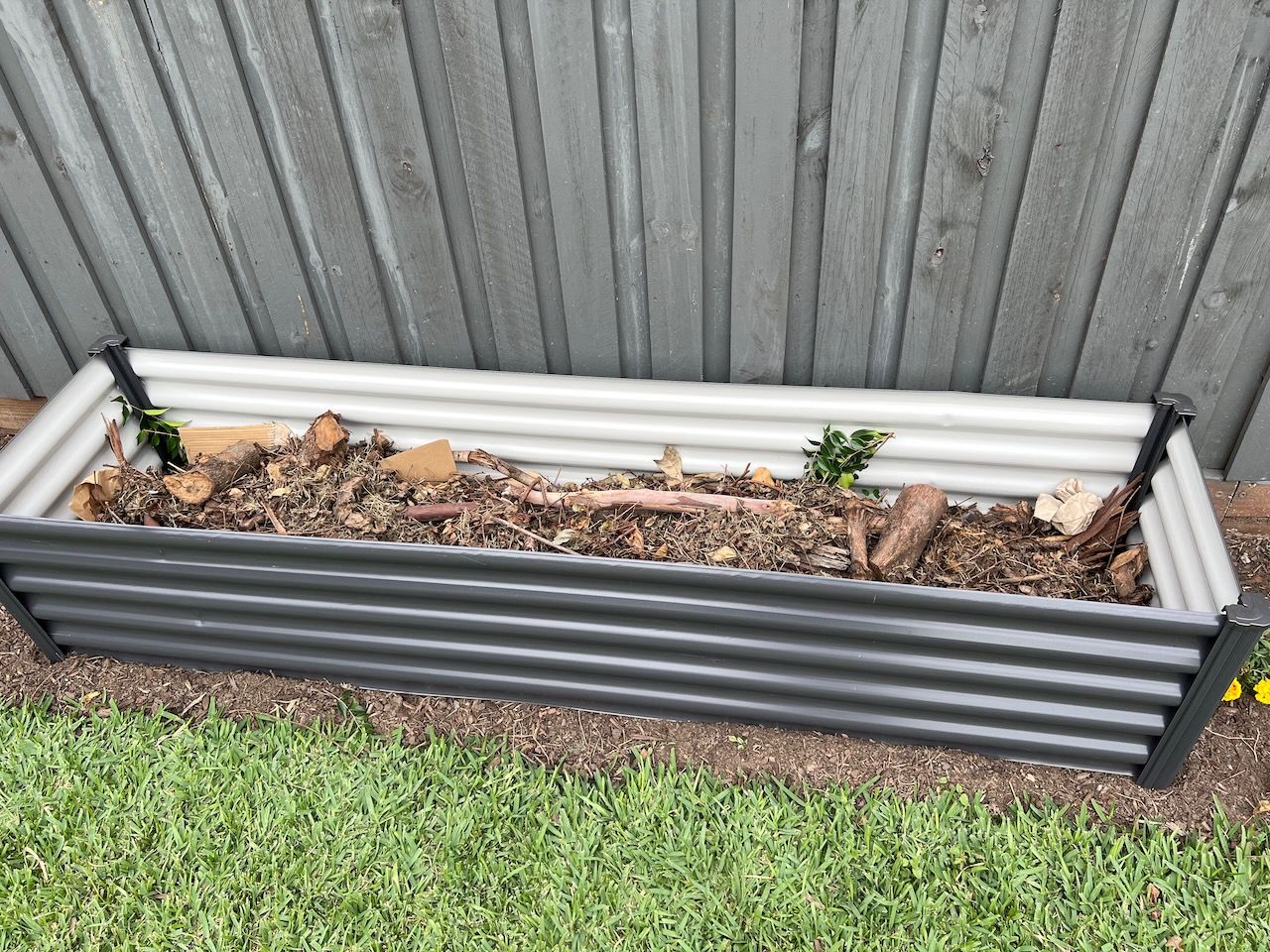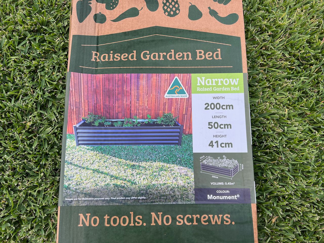 Each box is 2000mm long, 500mm wide and 410mm high, both from Bunnings (Bunnings sells everything) by a brand called The Organic Garden Co.
