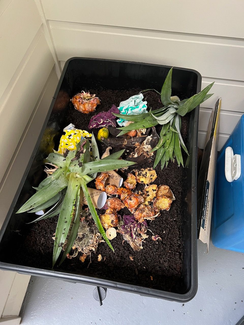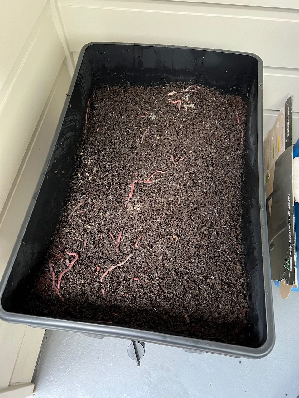 A week later the worms seemed to settle in so I put a bunch of food on top.
