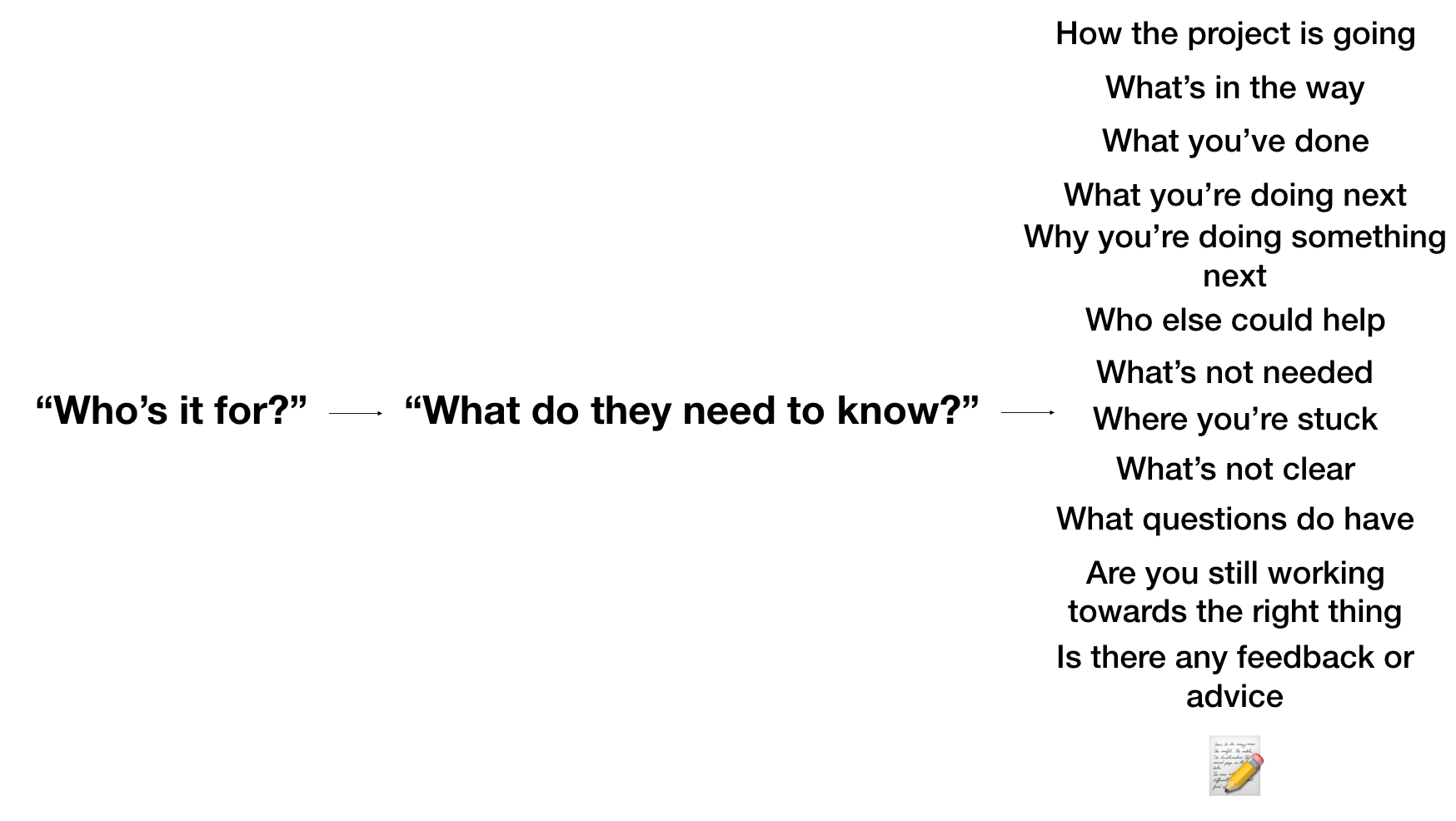 Whenever you're communicating your work, ask yourself, "Who's it for?".